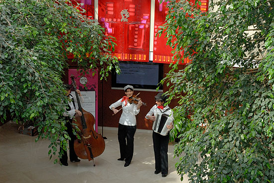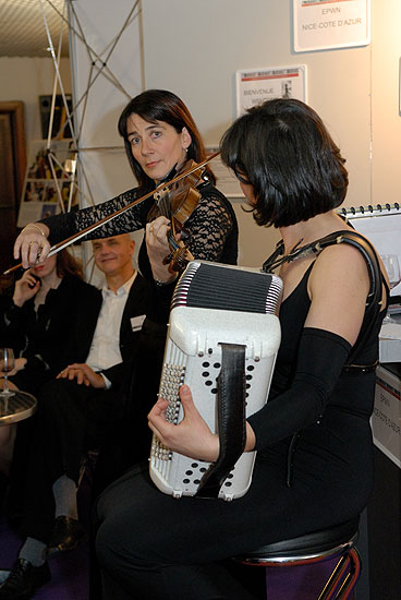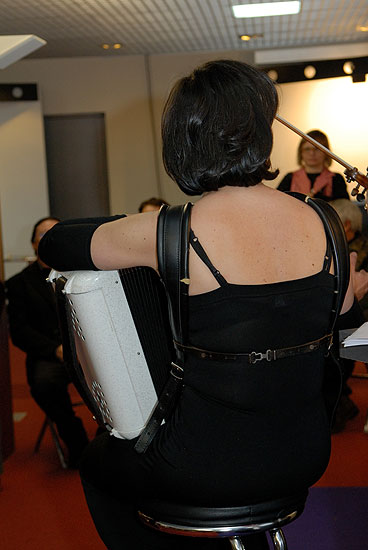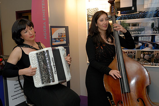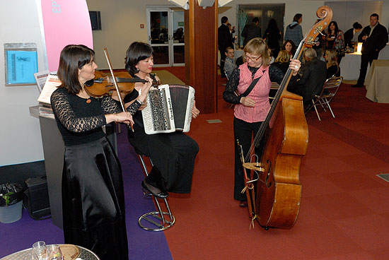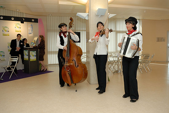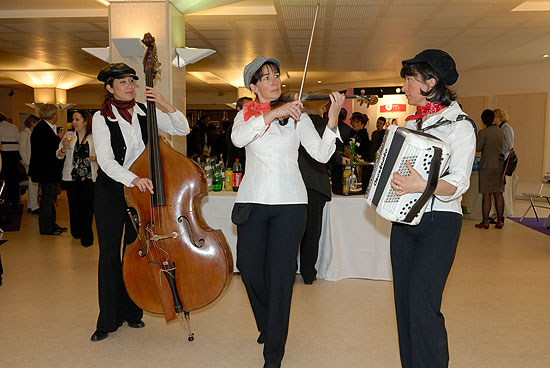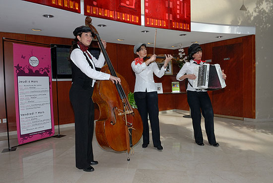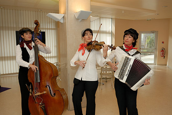 Le Trio Butterfly est composé de trois femmes : une violoniste, une accordéoniste et une contrebassiste.
