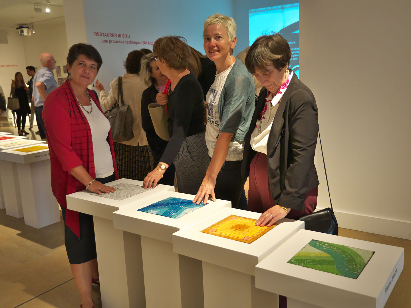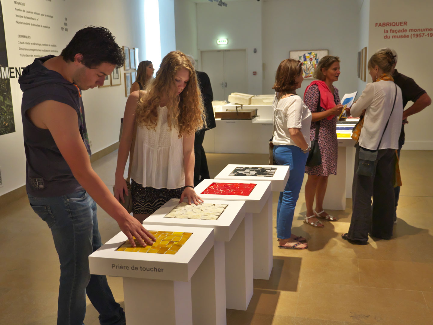 Madame Anne Dopffer a ensuite indiqué son souhait pour que cette exposition qui retrace l'histoire de cette façade décorative soit ludique et interactive, conçue pour un large public. Des tablettes tactiles permettent une compréhension visuelle et tactile des matériaux utilisés et de leur mise en œuvre pour la façade.