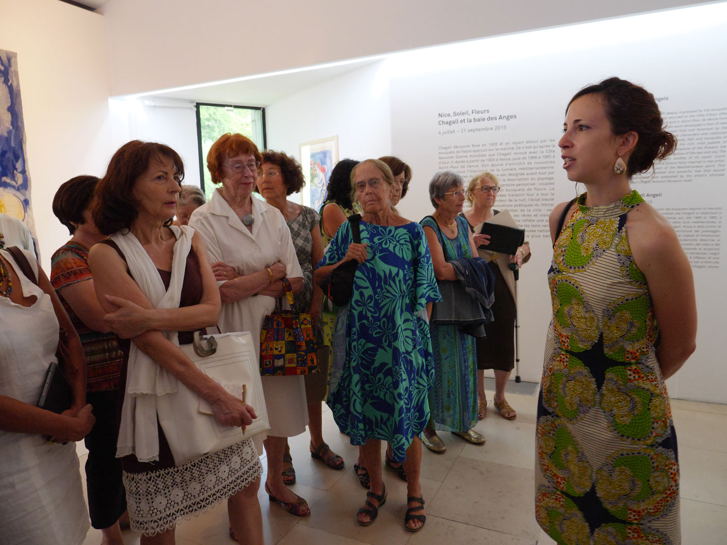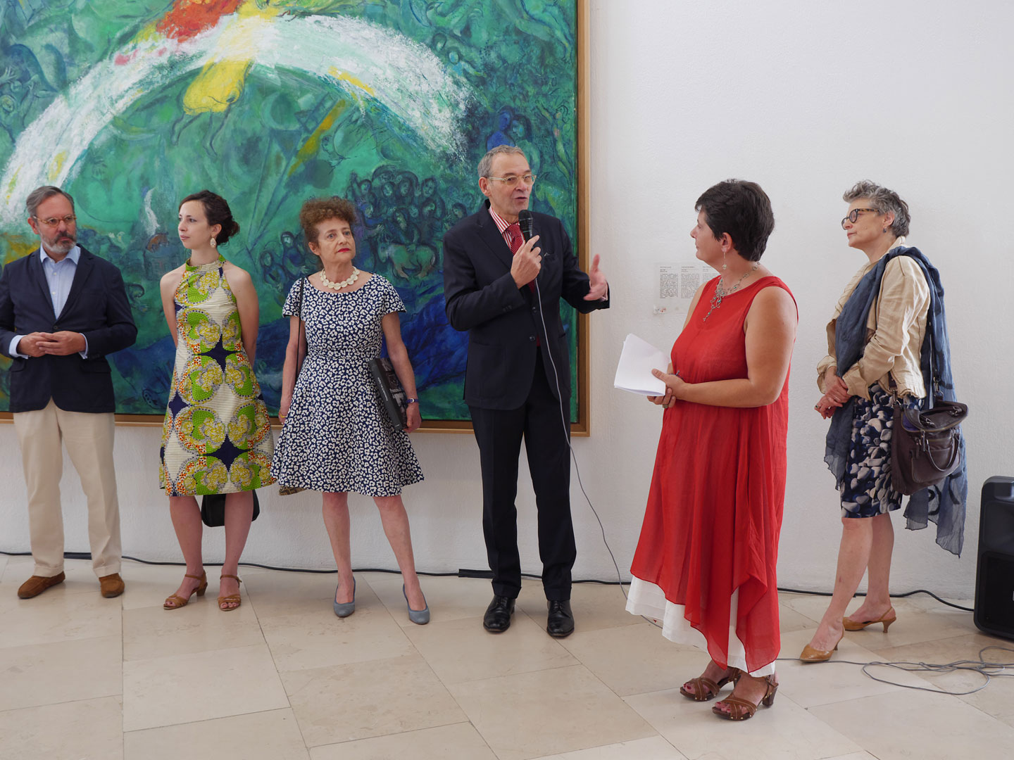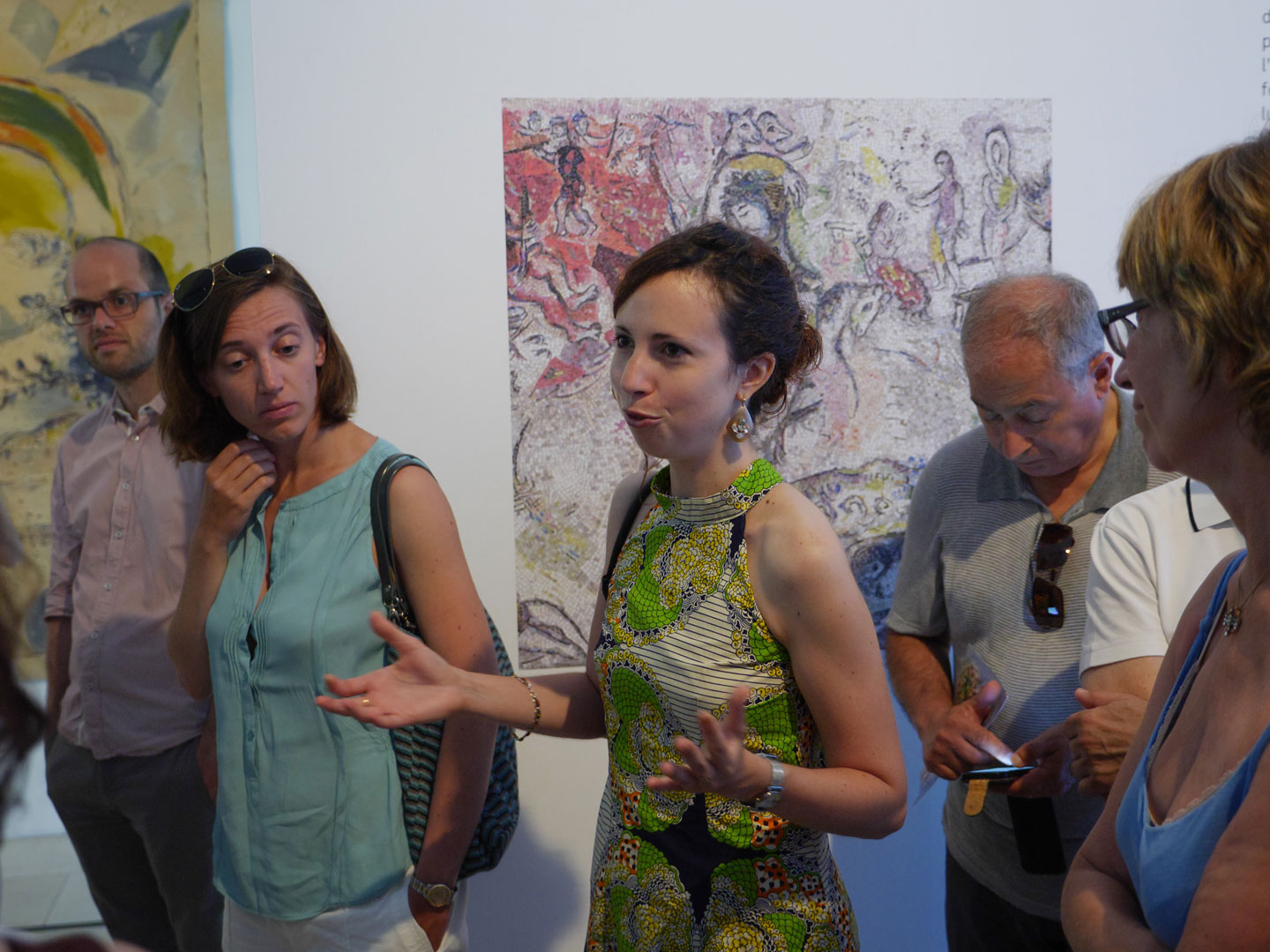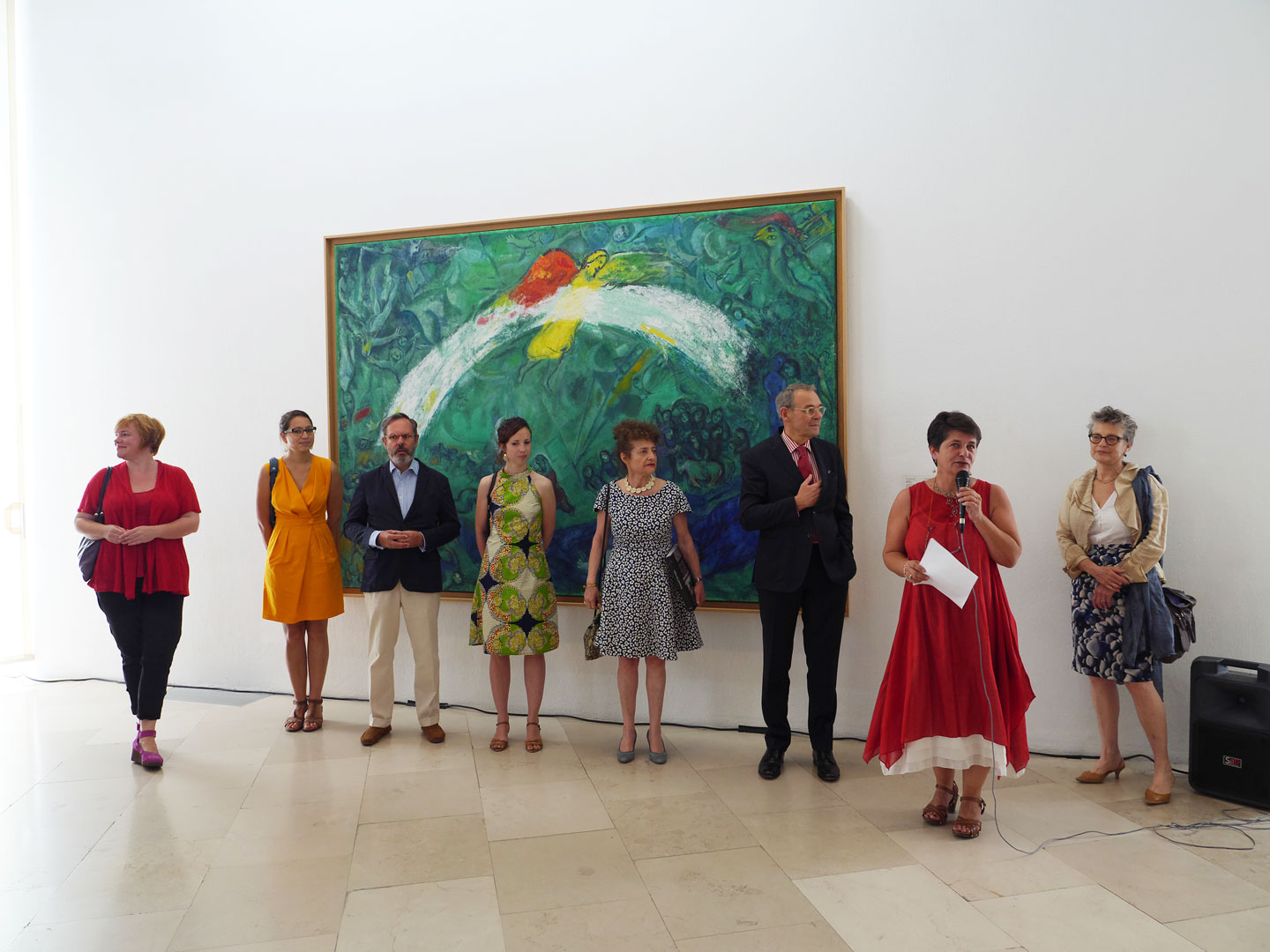 Sarah Ligner a ensuite réalisé la présentation de l'exposition « Nice Soleil Fleurs. Marc Chagall et la Baie des Anges » au nombreux public venu pour l'inauguration. Le plan de l'exposition suit une progression dans les six espaces consacrés aux oeuvres.