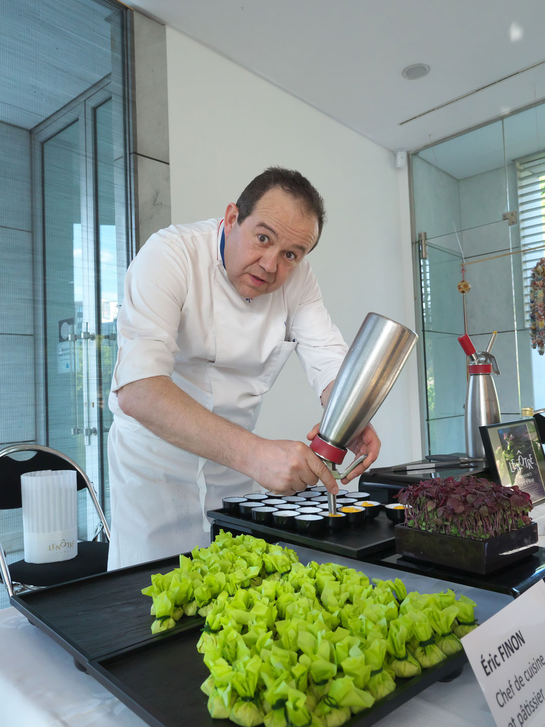 Éric FINON, chef de cuisine et pâtissier travaillant pour Lenôtre sur la Côte d'Azur, Meilleur Ouvrier de France en 2011, proposait pour sa part des deux bouchées: « la carotte en Zéphir » et « le Daïkon acidulé au gingembre ». L'idée retenue pour le chef était de jouer sur les contrastes de goût et de forme en employant des produits japonais. Le Daïkon, radis noir japonais, apportant du croquant et sa préparation de l'acidulé. La carotte préparée de manière très aérienne (mousse gélifiée) apportant du sucré en bouche.