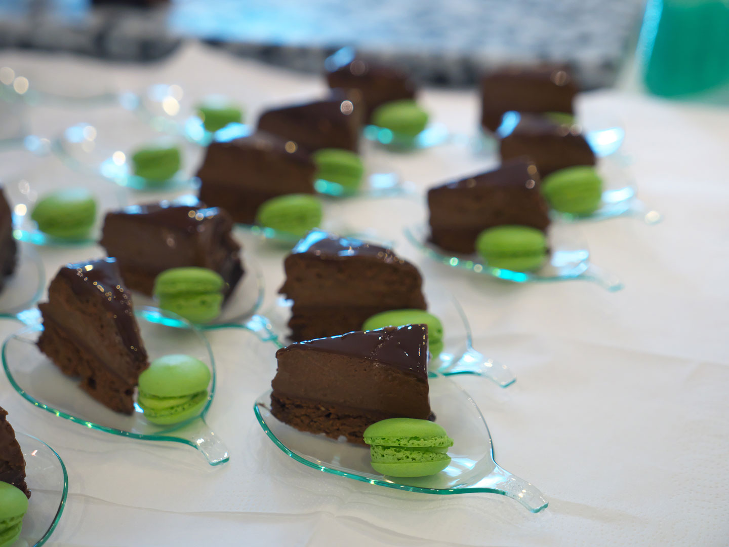 Christian CAMPRINI, chocolatier à Valbonne, Meilleur Ouvrier de France en 2004 et membre historique de l’Association des Patissiers de Restaurants de la Côte d'Azur (APRECA), proposait un assortiment de « Macaron yuzu » et « Diamant noir » pour jouer sur les contrastes de texture et de couleur. Le Diamant noir, entremets chocolat noir aux cinq textures, origine Madagascar, est une des spécialités de Christian CAMPRINI avec la Tarte Calisson provençale (fourrée orange confite, amande et fleur d’oranger). Nous l'avions renconté lors de la soirée des chefs au Park à l'occasion des Etoiles de Mougins en 2008 avec le coté salé réalisé par les Toques brûlées et le coté sucré par lAPRECA.