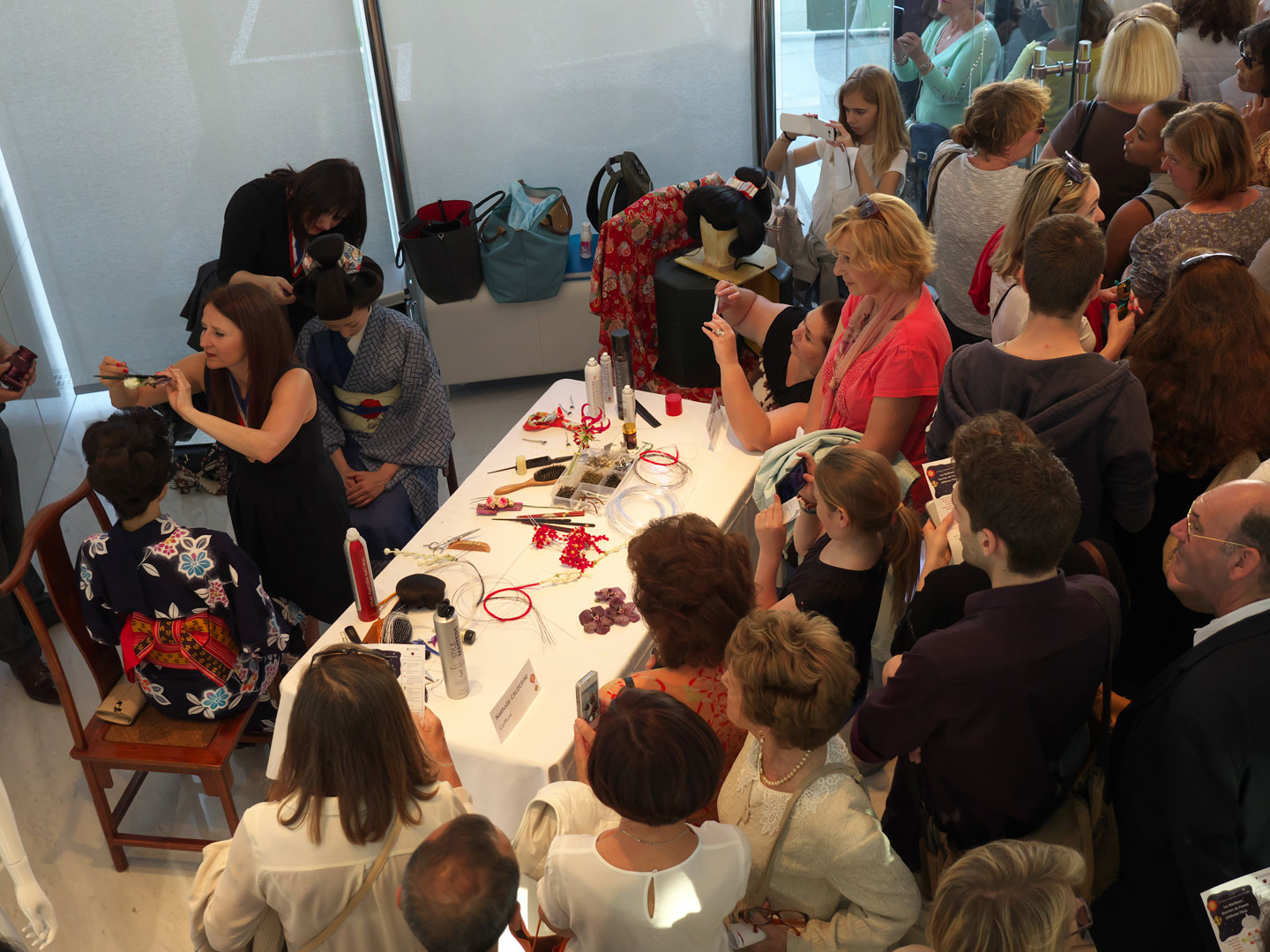 Assurément leur atelier a attiré le public qui est venu apprécier leur travail. Les coiffures n'utilisent pas d'élastique mais des tiges métalliques pour tenir les cheveux. N'ayez pas peur d'aller dans leurs salons, elles ne vous transformeront pas en Geisha pour les moments où vous voulez être la plus belle (comme pour votre mariage).