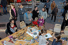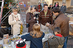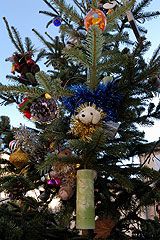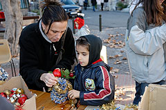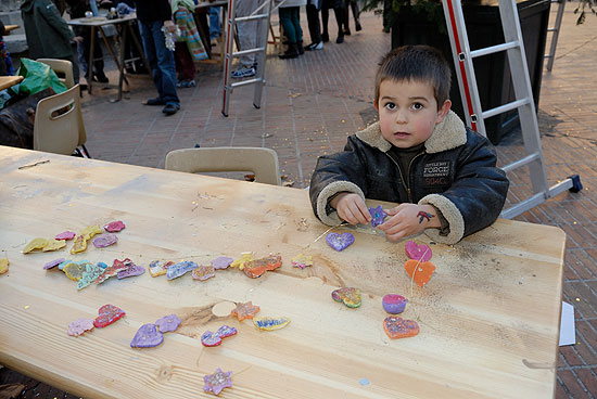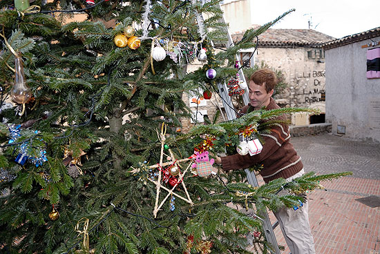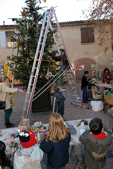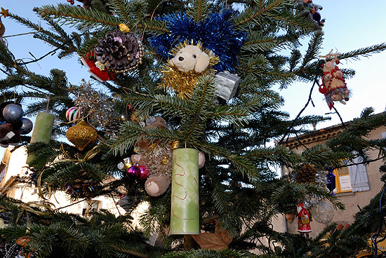 Loïc Bettini, marionnettiste biotois, nous a proposé de fabriquer avec lui des objets artistiques ou de venir avec notre création, légère et originale, pour décorer un magnifique sapin de Noël installé place de Gaulle dans le village de Biot.