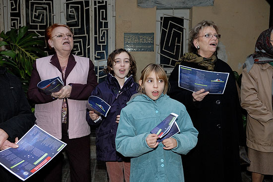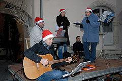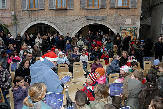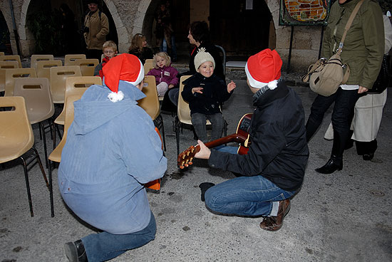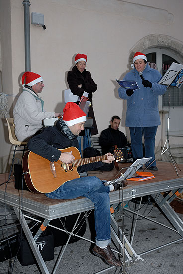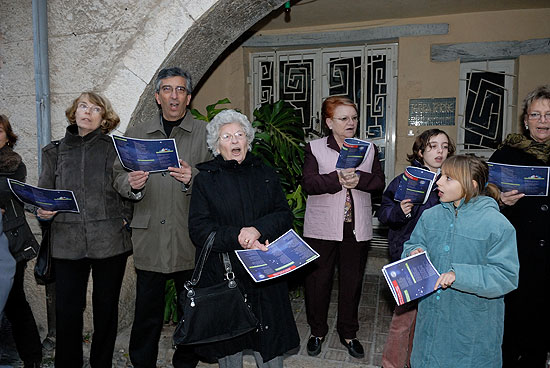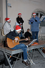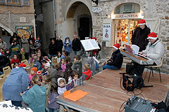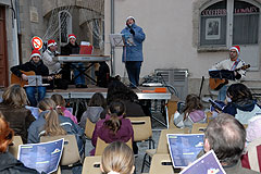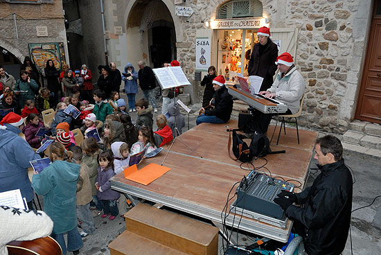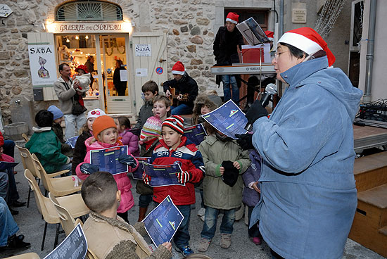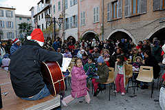 Tous les biotois étaient invités à venir chanter noël, place aux Arcades, sous la direction d’Anne Depetris, professeur à l’Espace des Arts et de la Culture (EAC). L’accompagnement musical était réalisé par Olivier Augé-Laribé (responsable de l’ensemble instrumental de l’EAC) et Nathalie Smil au piano ainsi que Stéphane Nicolettos et Olivier Cuchet à la guitare.