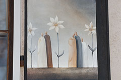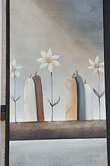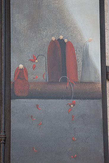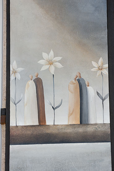 Sophie Hustin puise dans son imagination et peint des personnages, des jarres, des cités imaginaires, dont les liens sont la féminité, la symbolique, l’espoir. Adoratrice de la matière, elle utilise un mélange de techniques différentes. Ses tableaux sont composés principalement de poudre de marbre, de sable de Biot, de feuilles de métal, de pigments, d’huile et d’acrylique.
