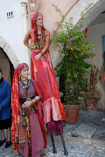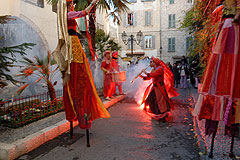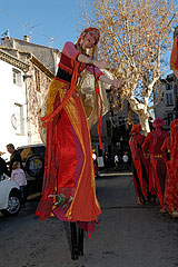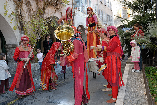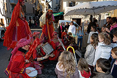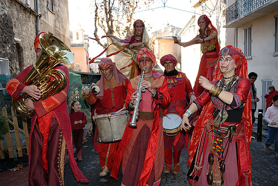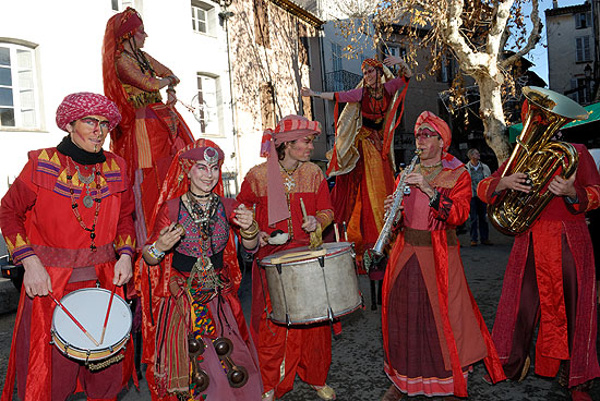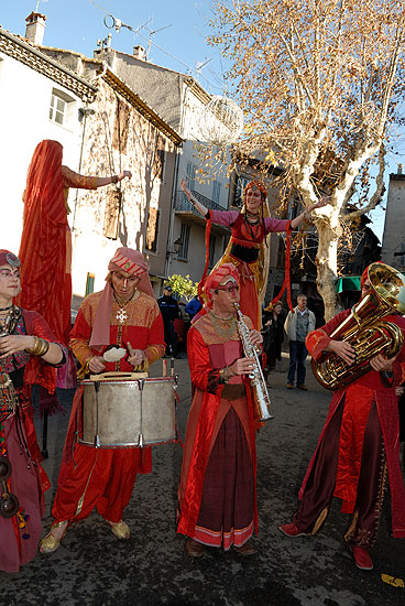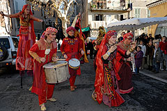 Libres, les Yourguis voyagent et donnent à voyager : mais d’où viennent-ils ? Sur des mélodies envoûtantes (inspirées de musiques folkloriques du monde entier), les cinq musiciens, accompagnés de leurs danseuses échassières, ouvrent les chemins de la fête. Les rues se transforment et résonnent dans un tourbillon de couleurs et de danses.