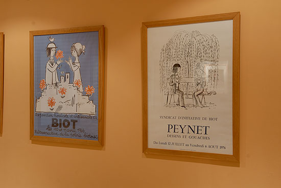 Cette exposition, qui a lieu pour le 100ème anniversaire de la naissance de Peynet, permets d’admirer la collection personnelle d’Annie Peynet, fille de l’artiste. Elle cherche à montrer l’oeuvre de Peynet sous une forme plus personnelle et l’on voit la progression du style, les ébauches de couleurs, l’évolution des croquis au dessin publié. Elle permets de retracer les liens forts qui lient Peynet au village de Biot (esquisses à partir de photographies des fêtes du village, publicité pour les manifestation de Biot). Elle est donc en cela complémentaire de la visite du musée Peynet d’Antibes.