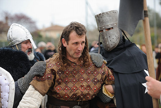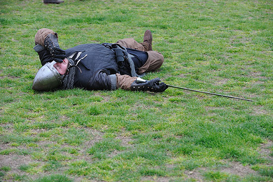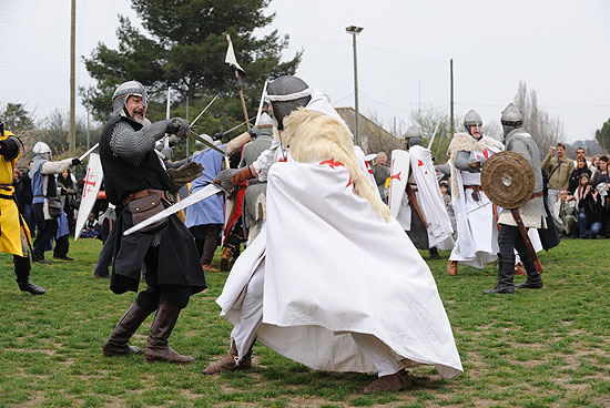 Les troupes en présence étaient fortement armées. Casques et côtes de mailles ruisselaient de sueurs.