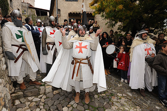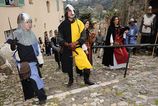 Aussi 800 ans après l’arrivée des Templiers à Biot elle doit bien s’étonner de découvrir en 2009 ces anciens combattants qu’elle n’a jamais vu de leur vivant (les chevaliers templiers durent quitter Biot en 1308). Mais bon ne faisons pas la fine bouche. La porte des Tines constitue un beau cadre pour un affrontement entre les Templiers, sorte de police de la route de l’époque, et une bande de brutes. D’ailleurs le public très nombreux ne s’y est pas trompé et à envahit cet espace d’habitute si serein.