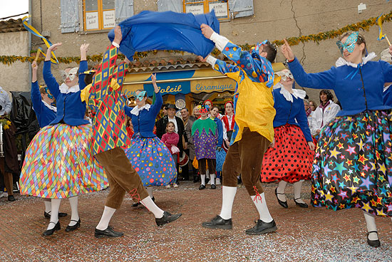 Groupe folklorique de la Parpaïola de Drap lors de la Fête du Mimosa à Biot