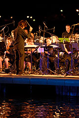 Le concert gratuit de pré-ouverture du 58ème Festival de Musique de Menton a eu lieu sur la plage des Sablettes en début de soirée. L'orchestre "La Musique de la Garde" sous la direction de Denis Segond a interprété un pot pourrit des meilleurs extraits des chansons de Ira et de Georges Gershwin (Fascinating rhythm, Embraceable you, Somebody loves me, Somebodyto watch over me, Igot Rhythm). Vinrent ensuite des extraits de Porgy and Bess, de An American in Paris et Rhapsody in blue.