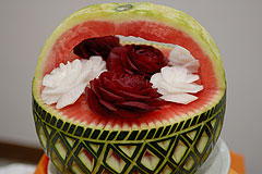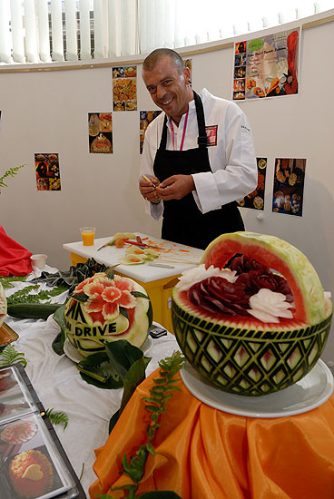 Anthony Belcastro assure via sa société "edible art" des formations au niveau professionnel mais aussi des mini cours d'introduction à la coupe pour les particuliers. Aussi n'hésitez pas à pratiquer avec lui l'art de la sculpture de fruits et légumes.