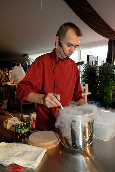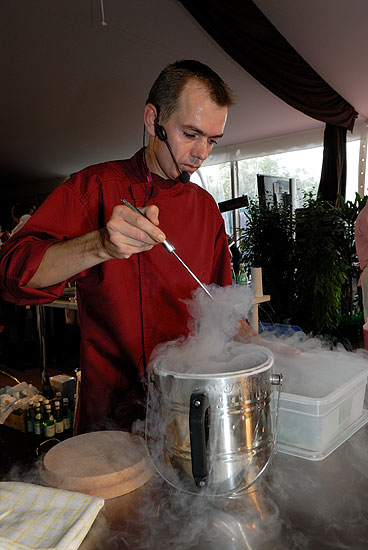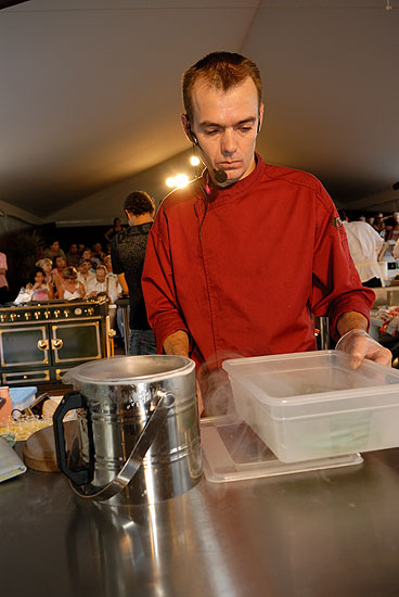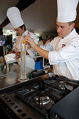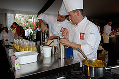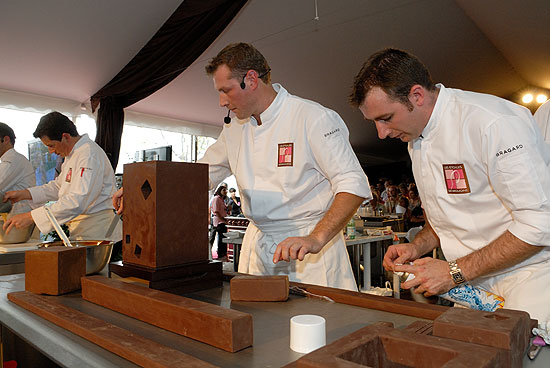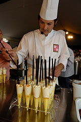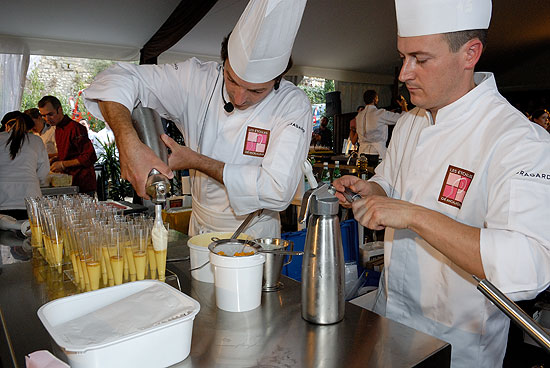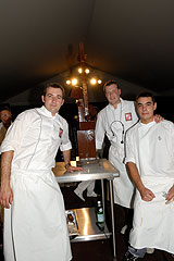 L'Association des Pâtissiers de Restaurant de la Côte d'Azur (Apreca) avait envoyé quelques un de ses prestigieux membres au "Etoiles de Mougins". Etaient ainsi présent : Nicolas Boussin du restaurant "Grand Marnier" à Paris, Christophe Michalak du palace "Plaza Athénée" à Paris, David Faure du restaurant "L'Aphrodite" à Nice, Christian Camprini de la "Chocolaterie 6C" à Opio, Eric Bonneau du restaurant "la Bastide Saint-Antoine" à Grasse, Nicolas Denis et Nicolas Maugard du restaurant "Faventia" à Tourrettes. Photographier n'a jamais été aussi difficile pour un grand gourmand et fin connaisseur de chocolat.