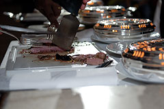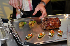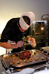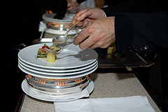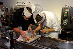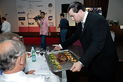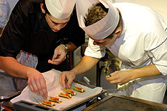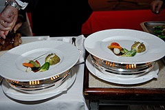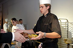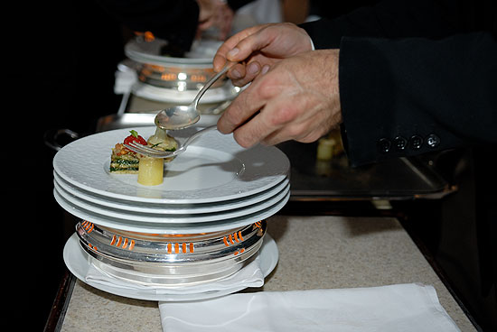Le dressage des plats était effectué par le personnel du Moulin de Mougins. Il commencent après le dressage du plat et les derniers préparatifs du chef en compétition.
