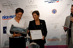 Élodie François, qui travaille à la Siesta à Antibes, a recu le prix du jeune sommelier d’Europe des mains de Brigitte Leloup, présidente de l'Association des Sommeliers d’Europe (A.S.E.) et d'Alain Quillé de la maison de champagne Laurent-Perrier.