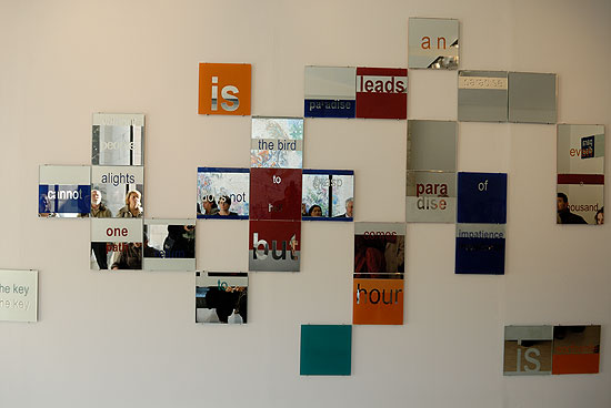 Les fragments des livres sont inscrits sur des miroirs dépolis et répartis selon quatre couleurs (une pour chacun des livres). Ensemble ils forment un tag électronique représentant le mot "Paradis" (l'utilisation de cette technique ayant été employée dans une oeuvre précédante de l'artiste).
