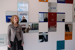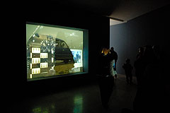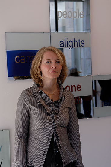Olga Kisseleva nous a alors indiqué que pour elle, une oeuvre doit améliorer le monde et posséder un message à saisir. Pour elle l'important est de placer le spectateur au centre de l'oeuvre, de le faire interagir avec l'oeuvre exposée. Peu importe donc le médium choisi. Dans une société de communication, bombardés d'images, l'interactivité permets de commencer un dialogue. Dans son oeuvre "Autre point de vue", elle demande au visiteur de choisir son emplacement. par un savant jeu de perspective, on peu ainsi se positionner et voir une des deux images. L'une étant une photographie à travers un bouclier lors d'une manifestation et l'autre une photographie prise à Dakar. On est ainsi emmené à se positionner par rapport à ses oeuvres.