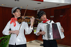 Le Trio Butterfly est composé de trois femmes : une violoniste, une accordéoniste et une contrebassiste.