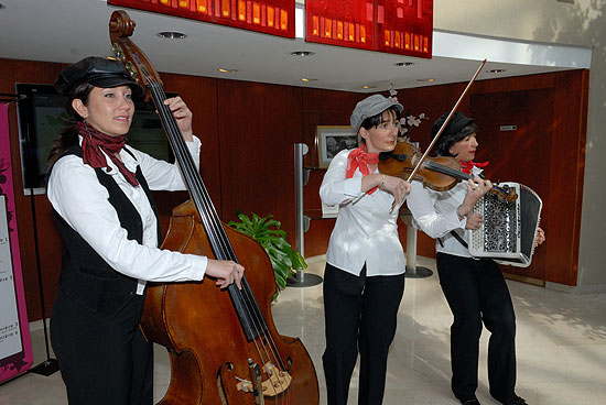 Le Trio Butterfly est composé de trois femmes : une violoniste, une accordéoniste et une contrebassiste.
