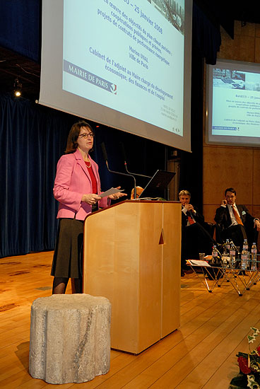 « Mise en œuvre des objectifs du plan climat parisien : coopérations publiques et privées, projets de contrats de performance énergétique, présentation de la convention d’objectifs et des réflexions en cours sur le montage de contrats de performance énergétique » par Marion Unal, conseiller technique, Chef de cabinet, Cabinet de l’Adjoint au Maire de Paris en charge du développement économique, des finances et de l’emploi.