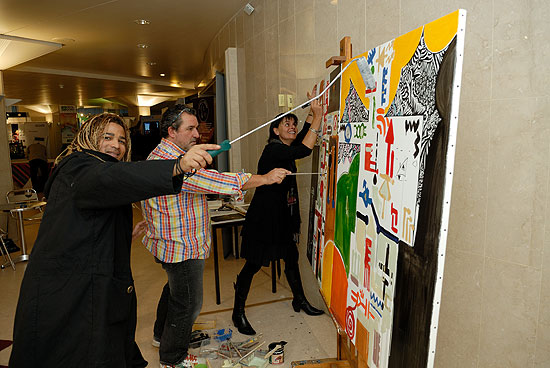 Dans le cadre de l'animation artistique organisée sur le salon Immotic-Domotic Agora par Babel Gate, l'art interactif au coeur de la cité, les artistes Chris Oven, Sad et Neil ainsi que Laurence Treyvaud Lacroix, agent d'artistes, avaient commencé l'oeuvre à laquelle devaient contribuer, chacun à sa façon, les différents participants au salon de la domotique et de l'immotique.