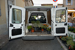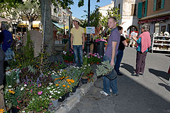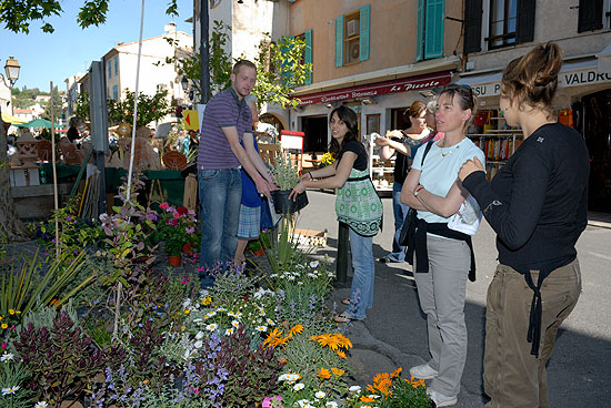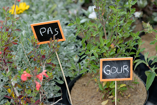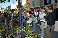 Une fois les plantes déchargées et le stand installé, les élèves ont pu discuter avec les accros des plantes plantes peu consommatrices en eau.