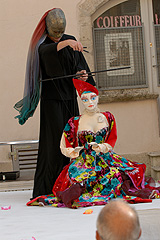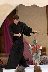Formé au théâtre et aux arts du cirque, Loïc Bettini, marionnettiste hors norme, crée des spectacles de marionnettes à fils qu’il fabrique lui-même.