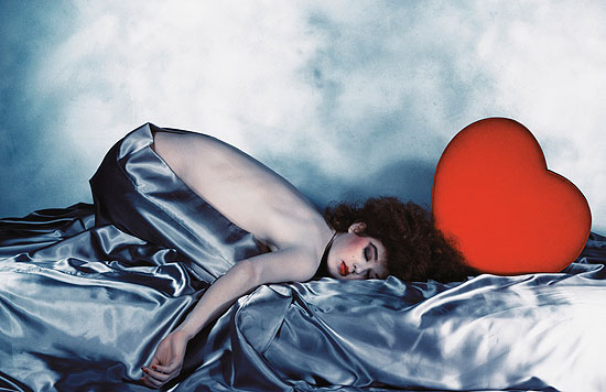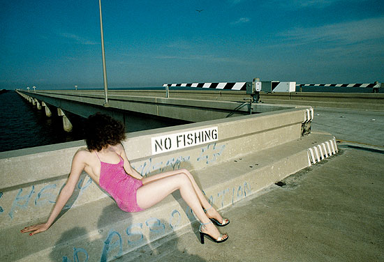 La puissance des photographies, leur tension est aussi renforcée par l’utilisation des couleurs : principalement le rouge du sang et sa complémentaire, le vert largement utilisées par Guy Bourdin dans ses compositions. Portées à leur degré de saturation, elles participent activement à la dramatisation des scènes qui sont livrées au regard des lecteurs. Eclatante au fil des pages, Guy Bourdin utilise la couleur comme un peintre le ferait. Il accorde à ses pigments un rôle de passeur essentiel : ils renforcent les sensations éprouvées, excitent les sens, accentuent la dramatisation quasi surréaliste de certaines scènes. Pour reprendre le titre d’un ouvrage de Sigmund Freud, les superbes photographies de Guy Bourdin nous plongent dans des univers baignés d’une « inquiétante étrangeté ». Elles nous malmènent et nous bousculent avec force aujourd’hui encore. L’œuvre de Guy Bourdin reste 18 ans après sa mort, en 1991, d’une extrême modernité.