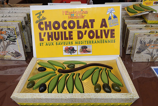 Du chocolat à l’huile d’olive, il fallait être marseillais pour oser se lancer dans le monde des chocolats haut de gamme avec ce crédo. Au final, ce mariage subtil de chocolat noir à 70% (pur beurre de cacao), d’amande douce, de menthe forte, d’écorce d’orange confite et d’huile d’olive vierge apporte en bouche des notes qui apparaissent successivement.