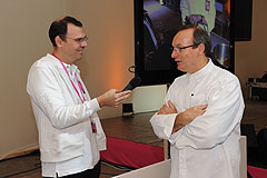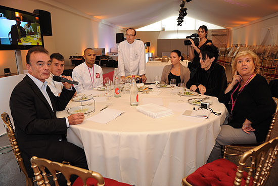 Malgré un horaire matinal, un public de fans était venu soutenir les candidats au concours amateur “Nice-Matin”. Jean-Michel Poupart, directeur des Etoiles de Mougins interviewait lui même Serge Gouloumès, membre du jury. Ce dernier n’a eu cesse tout au long des préparations culinaires de soutenir les candidates et de leur apporter des conseils judicieux.