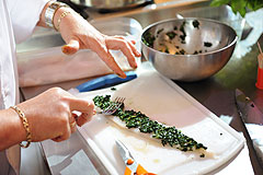 Les préparations culinaires se sont faites de manière très sérieuse, d’un coté un belle tourte aux herbes et de l’autre un velouté et son poisson aux herbes.